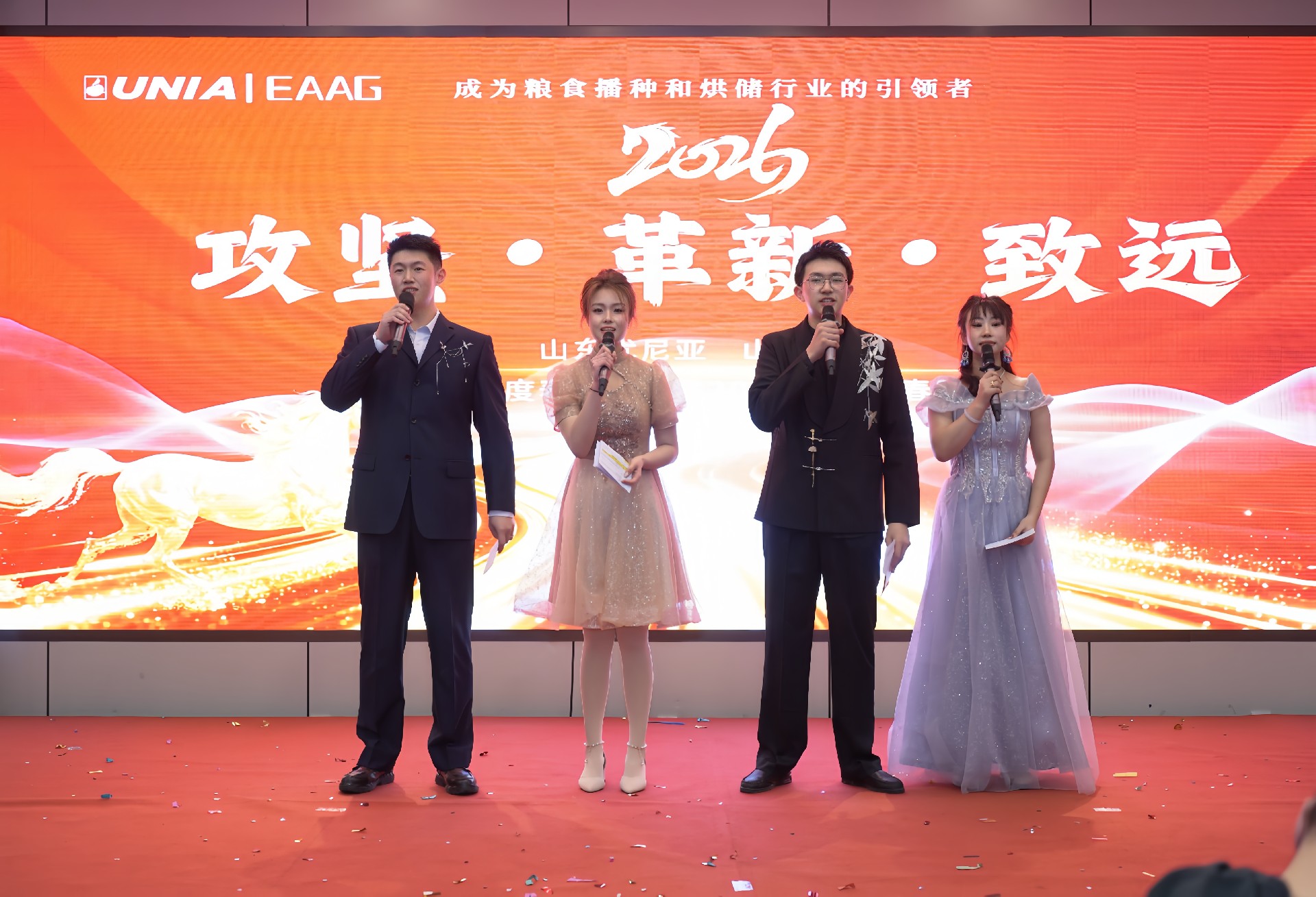 駿馬迎春,萬象啟新。2月10日,山東優(yōu)尼亞農(nóng)業(yè)機械有限公司“攻堅·革新·致遠(yuǎn)”2026年會暨2025年度總結(jié)表彰大會隆重舉行。公司全體員工與家屬代表歡聚一堂,共敘奮斗,同繪藍(lán)圖。